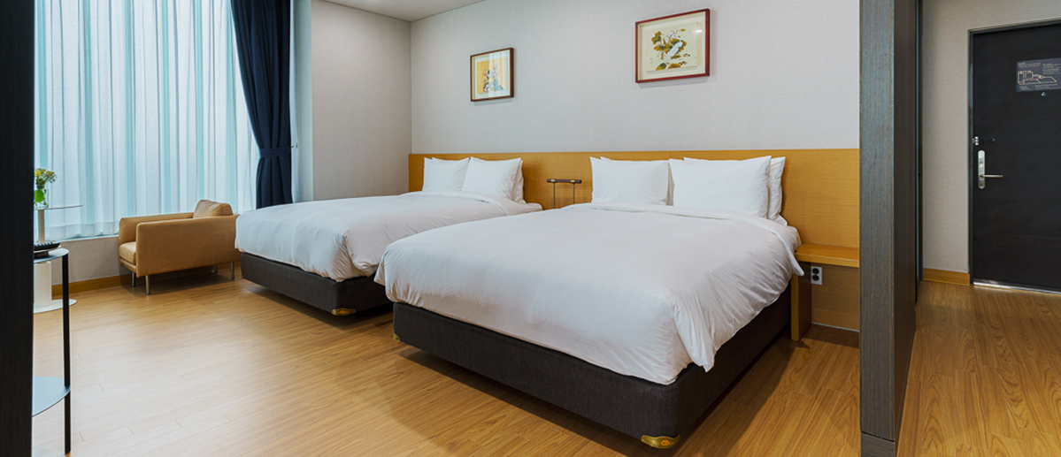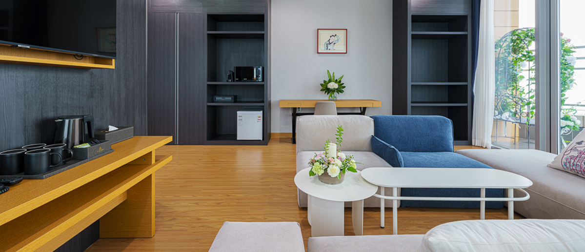 세련되고 안락한 인테리어에 전통 민화를 전시하여 현대와 전통이 어울어 지는 스위트 객실, 휴양과 힐링을 만끽하려는 고객을 위해